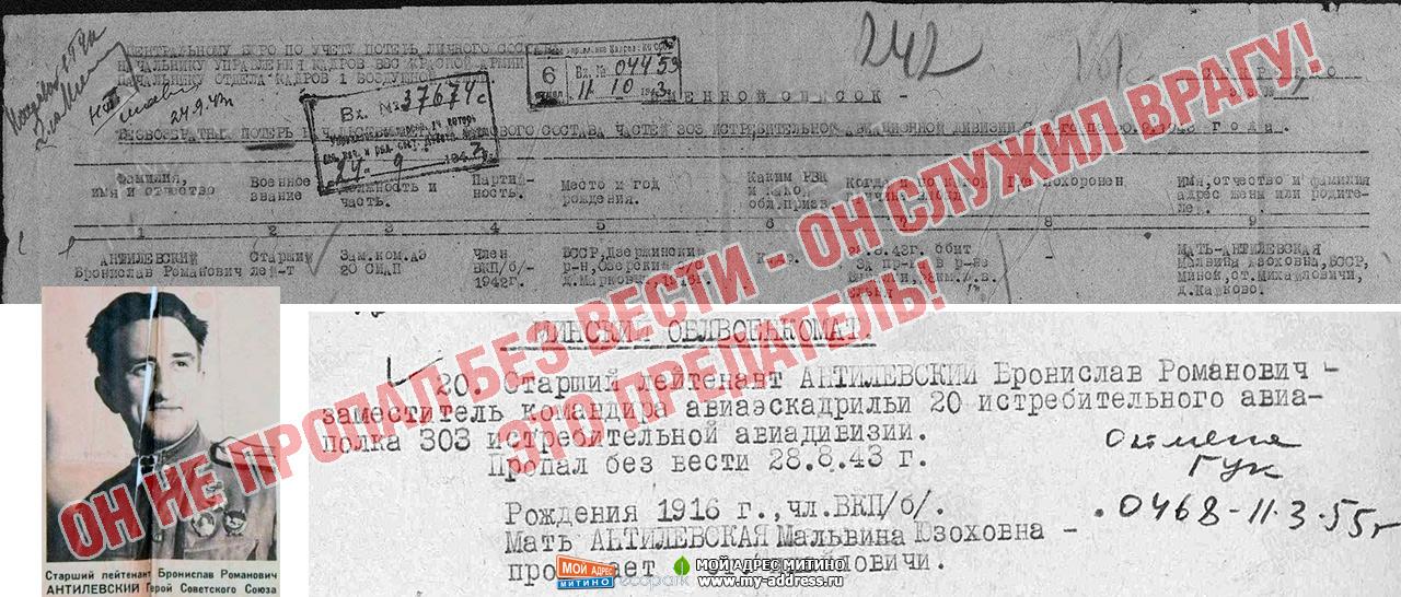 Антилевский Бронислав Романович - В конце 1943 года он вступил в РОА, принял присягу, перегонял немецкие самолеты с заводов на прифронтовые аэродромы, работал инструктором по подготовке летчиков, участвовал в антисоветской пропаганде. В апреле 1945 года командовал истребительной эскадрильей РОА.